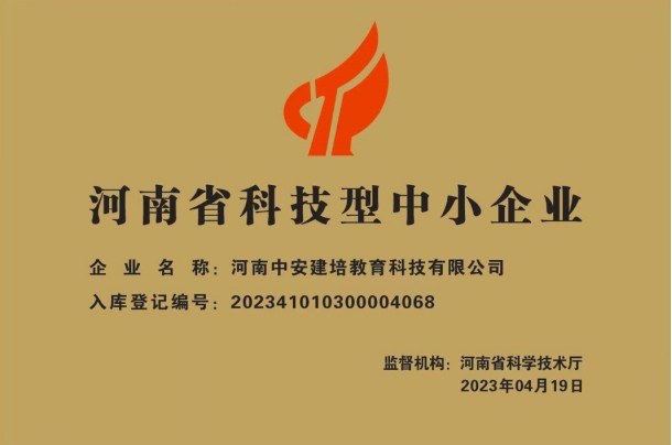 近日,河南省科學技術廳發(fā)布關于“河南省2023年第三批入庫科技型中小企業(yè)名單公告”。通過審核、公示等環(huán)節(jié),河南中安建培教育科技有限公司(簡稱“河南中安建培”)獲評“河南省科技型中小企業(yè)”稱號...